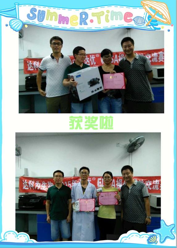 上午9點(diǎn)半正式開始,先是由相關(guān)人員講解比賽的注意事項(xiàng)及評(píng)分標(biāo)準(zhǔn),然后參賽人員開始正常操作比賽。這次參賽的人員有來自彭濤課題組、黃俊課題組的學(xué)生以及研究所的技術(shù)人員。此次參賽的大部分人員由于都有一定的ELISA實(shí)驗(yàn)基礎(chǔ),因此比賽的流程進(jìn)行地比較順暢,其中有一位同學(xué)接下來的課題剛好需要用到ELISA檢測(cè),他說通過這次的交流賽,也是為接下來的實(shí)驗(yàn)?zāi)M操作,能夠幫助自己發(fā)現(xiàn)實(shí)驗(yàn)操作中的不足和漏洞,收獲頗豐。并且還說今后購買試劑盒會(huì)優(yōu)先考慮我們達(dá)優(yōu)?試劑盒的。免疫所的老師不僅幫我們監(jiān)督評(píng)分還幫我們頒獎(jiǎng),還介紹說這次所里的有些學(xué)生暑假回家了,人數(shù)比較少,不然這是一個(gè)很好的交流機(jī)會(huì),同時(shí)也希望我們以后還有更多這樣的實(shí)驗(yàn)技能交流賽。