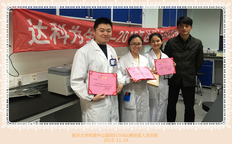 上午10點(diǎn)在復(fù)旦大學(xué)附屬中山醫(yī)院開(kāi)始比賽,一直到下午4點(diǎn)結(jié)束。參賽人員是來(lái)自呼吸科、神經(jīng)科、消化科 放療科、心內(nèi)科肝外科等科室的11位研一老師參加比賽,其中有4人獲獎(jiǎng)。一等獎(jiǎng)1名獲得kindle書(shū),二等獎(jiǎng)1名獲得充電寶,三等獎(jiǎng)1名獲得自拍桿一個(gè)。心動(dòng)了吧,不如行動(dòng),集齊隊(duì)員即可參加我們的ELISA比賽哦!