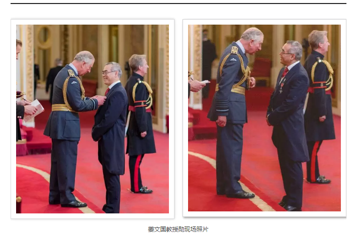 2017年3月16日,英國卡迪夫大學(xué)的華人科學(xué)家姜文國教授在倫敦白金漢宮接受了英國王儲查爾斯親王親自授予的2017年度“大英勛章”,表彰其在“國際癌癥研究方面的突出貢獻”, 成為首位獲得這一榮譽勛章的原籍為中國大陸的科學(xué)家。