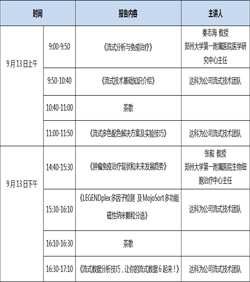 金秋九月,達(dá)科為流式培訓(xùn)班要來鄭州啦,名師講解,理論與實驗雙管齊下,輕松完成流式八色檢測分析,更有LEGENDplexTM多因子Demo演示,磁珠分選Demo以及De Novo 流式軟件數(shù)據(jù)分析演示。流式上機名額有限,歡迎踴躍報名!