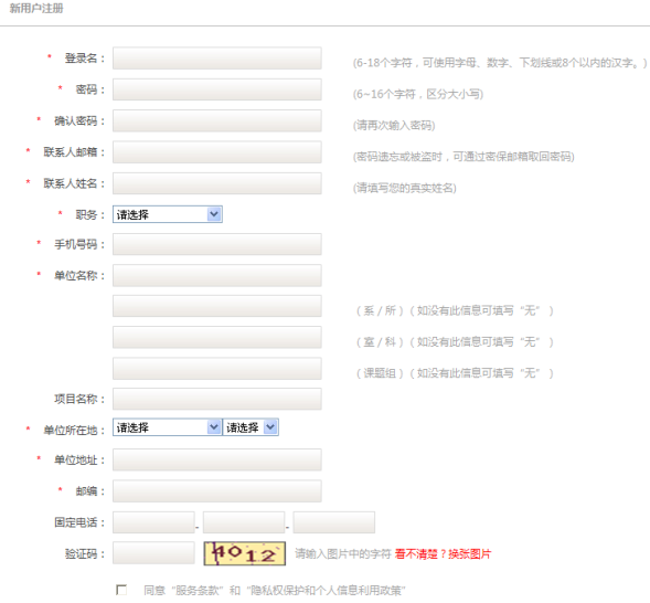 2.進(jìn)入注冊頁面,根據(jù)要求認(rèn)真填寫注冊信息,帶紅色標(biāo)記的為必填項(xiàng),并同意注冊條款,就可生成新用戶。