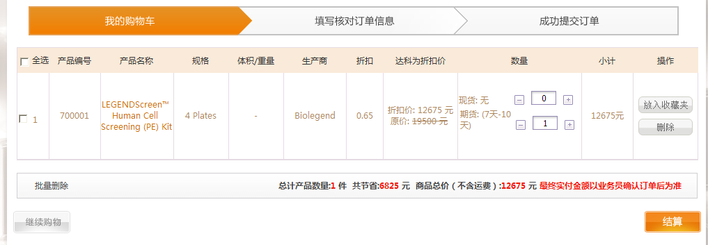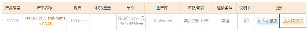 在產(chǎn)品目錄中點(diǎn)擊“放入購物車”,可以將產(chǎn)品放入購車車中。