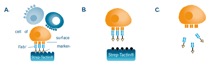 Streptamer?涵蓋了從細(xì)胞分選、細(xì)胞擴(kuò)增到細(xì)胞染色的一系列完整細(xì)胞研究產(chǎn)品線。事實(shí)上,Streptamer?的這種可逆機(jī)制是依賴于IBA專利的Strep-tag?技術(shù),從而經(jīng)過多重陽性分選,可獲得用于后期擴(kuò)增或染色的目的細(xì)胞。