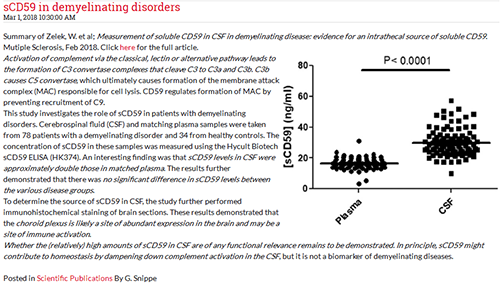 Hycult Biotech公司在天然免疫研究方面積累了豐富的經(jīng)驗(yàn),其新明星產(chǎn)品Soluble CD59 ELISA試劑盒已經(jīng)在文獻(xiàn)中發(fā)表,文獻(xiàn)結(jié)果如圖顯示: