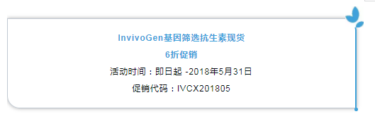 達(dá)科為生物是InvivoGen公司在中國的一級(jí)代理,并且和InvivoGen一直都有良好的合作,達(dá)科為準(zhǔn)備了大量InvivoGen篩選抗生素現(xiàn)貨,即日起篩選抗生素下列現(xiàn)貨參加6折促銷活動(dòng):